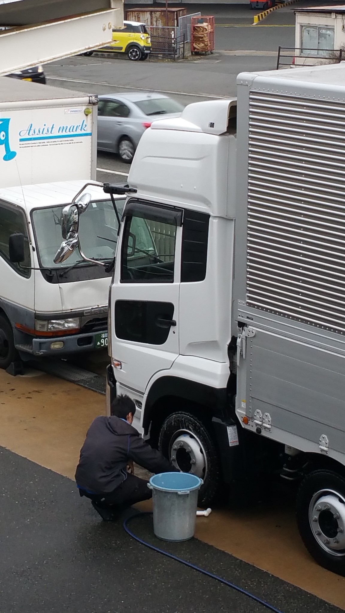 スタッフ:T君が、せっせとトラック洗車をしていました!